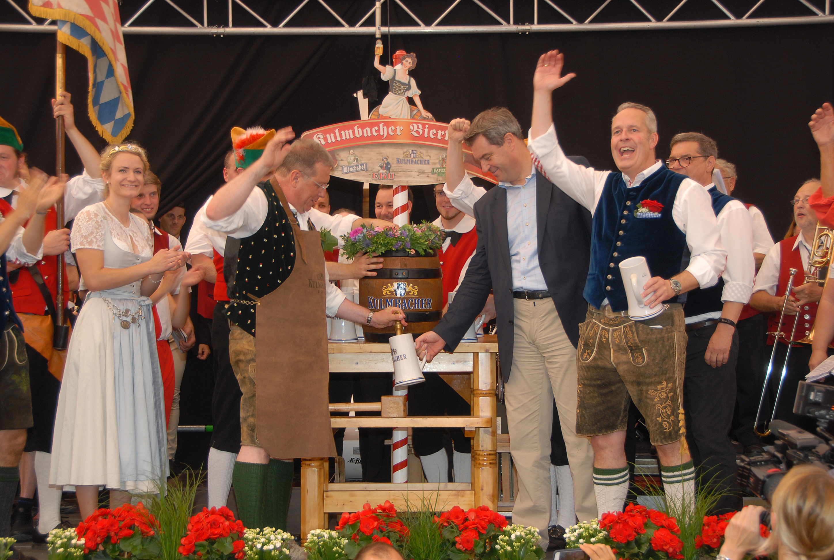 Zum ersten Mal in der Geschichte der Kulmbacher Bierwoche hatte der amtierende bayerische Ministerpräsident an der offiziellen Eröffnung teilgenommen. Nach dem die Ehrengäste an der Rathaustrappe von der Abordnung der Kulmbacher Brauerei in Empfang genommen wurden, fand der alljährliche Tanz der Büttner, das Standkonzert der Kulmbacher Stadtkapelle und der Salutschuss durch die Kgl. Priv. Schützengilde Kulmbach von 1511 statt.