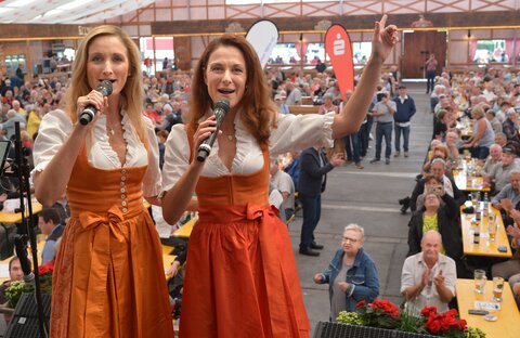 Der Höhepunkt des Tags der Generationen war zweifellos der mit Spannung erwartete Auftritt von "Sigrid und Marina". Die beiden Schwestern, die seit ihrem triumphalen Sieg beim Grand Prix der Volksmusik 2007 zu den bekanntesten Größen der volkstümlichen Schlagermusik zählen, verzauberten das Publikum mit ihrer herzlichen Art und ihren wundervollen Stimmen. Von der ersten Note an entführten sie die Zuschauer in eine Welt voller Melodien und Harmonie. Die Begeisterung im Publikum war deutlich spürbar und viele sangen gemeinsam mit den beiden Schwestern ihre bekannten Hits mit.