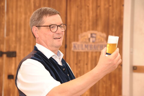 Zum Höhepunkt des Termins gehörte die Verkostung der Festbiere. „Durch Tradition geprägtes Brauhandwerk geht mit handwerklicher Sorgfalt und besonderer Qualität einher. Das kennzeichnet unsere drei Festbiere von Kulmbacher, Mönchshof und EKU, sowie das Kapuziner Weißbier, die wir auch dieses Jahr mit besonderer Hingabe gebraut haben“, versicherte Herrmann Nothhaft, Leiter Technik und Qualitätssicherung der Kulmbacher Brauerei, der vor rund acht Wochen die Festbiere einbraute. „Was unsere Festbiere auszeichnet, sind sorgfältig ausgewählte Rohstoffe aus der Region. Die Braumalze bekommen wir aus Franken, das weiche Wasser kommt aus dem Fichtelgebirge und der feine Aromahopfen aus der Hallertau.“