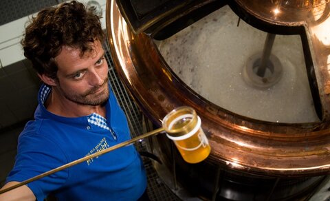 „Das Maisch-Programm lasse ich dabei auf niedriger Temperatur laufen, es dauert somit länger, als normalerweise. Die Stammwürze wird bei 12,5 bis 12,7 Prozent liegen, der Alkoholgehalt bei mehr als 5 Vol. Prozent“, erläuterte Hacker. „Ich bin selbst äußerst gespannt, wie unser Jubiläumsbier werden wird“, gestand der Diplom-Braumeister.