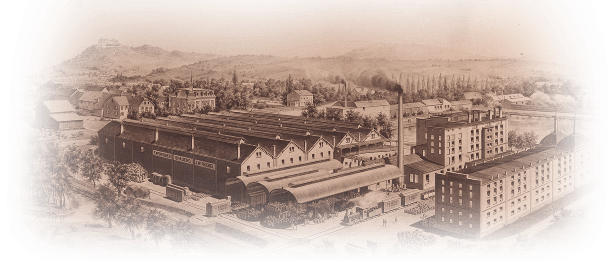Seit mehr als 150 Jahren werden unsere Bierspezialitäten von Kulmbach aus über Oberfranken hinaus ins Land und die Welt gebracht. In Kulmbach – bekannt als die „heimliche Hauptstadt des Bieres“ – wurde im 19. Jahrhundert in 56 Brauereien Bier gebraut. 1846 schlossen sich die „prauenden Bürger“ Johann Wolfgang Reichel, Johann Konrad Scheiding und Johann Martin Hübner zu einer Brauergemeinschaft zusammen.